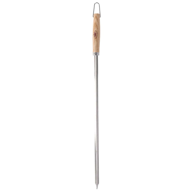- These long, V-shaped Stainless Steel BBQ Skewers feature a wooden handle and a sharp tip.