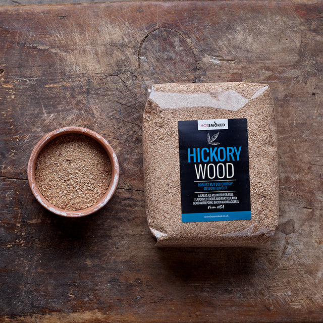 Hickory has a strong but wonderfully mellow smoke flavour which is perfect for a full smoky flavour in bacon, cured meats, charcuterie and oily fish such as salmon and herring. Try with nuts, chillis and dried fruits as well as strong cheeses. The dust is mix of pale and dark tones and the particle size tends to be larger wood flakes of around 3mm in size, though as a natural product, batches can vary.