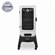 Gone are the days when your smoker was just another black box, the 1650-watt 3-Series Digital Electric Vertical Smoker changes everything. Not only does it feature a large front window, but it also boasts 4,424 square centimeters of porcelain-coated cooking racks. In addition, it includes locking caster wheels, an easy-to-read digital controller, a meat probe, and a stunning silver finish.