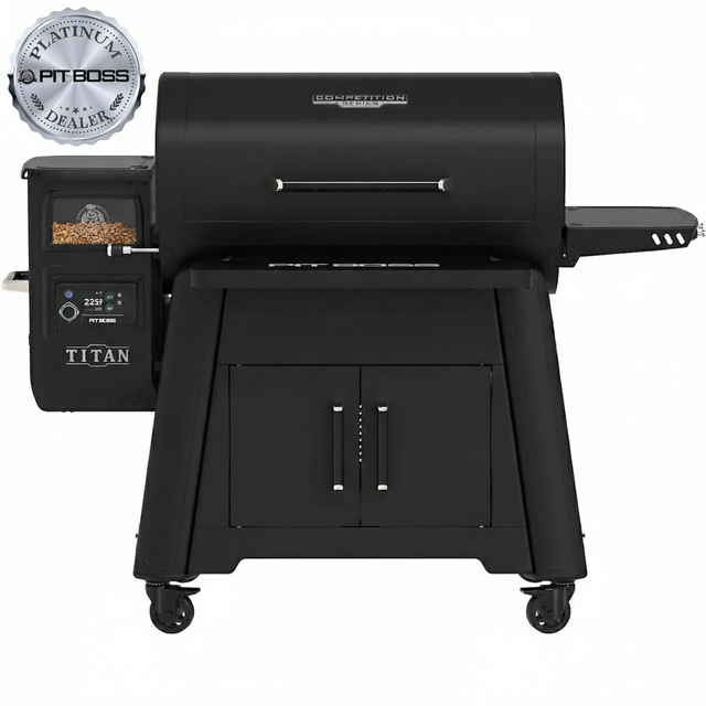 Introducing the latest addition to the Pit Boss® Competition Series grill lineup: The Titan Wood Pellet Grill. With more than 1600 square inches of cooking space and a 40-pound wood pellet hopper capacity, the Pit Boss Titan allows you to easily cook for friends and family or a whole crowd.