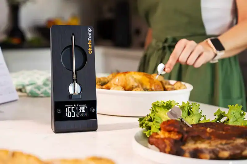 The Chefstemp digital control systems are built for precision and endurance. An ultra-thin 4.55mm needle probe leaves barely a trace, while the 40-hour built-in battery keeps you cooking without interruption.