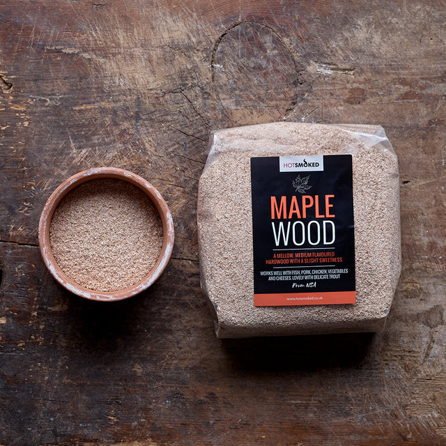 Our Maple Wood Smoking Dust delivers a mellow, rich, medium strength smoke flavour with a slight sweetness which is highly versatile for a wide range of foods, but particularly complements fattier meats such as pork, bacon and charcuterie and oiler fish such as salmon and herring. The wood is a light, pale colour and the dust consistency is fine and dense.